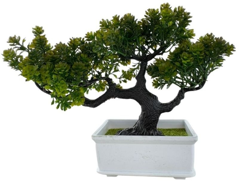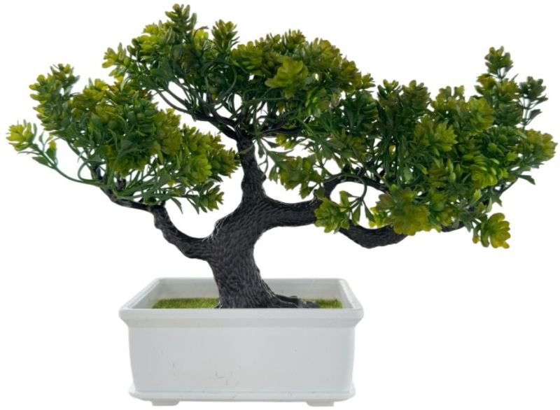 Bring a touch of greenery and elegance to your space with this beautifully crafted Artificial Bonsai Tree. Designed to mimic the natural charm of a real bonsai, this decorative piece features lush green foliage and a textured brown trunk set in a sleek white rectangular pot. The lifelike details add a natural look, making it ideal for home decor, office desks, or as a thoughtful gift.