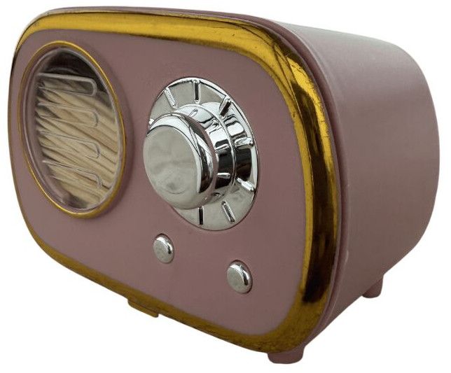 • Design: Unique vintage radio-inspired shape with glossy gold edges and dual-tone finish (cream & pink).